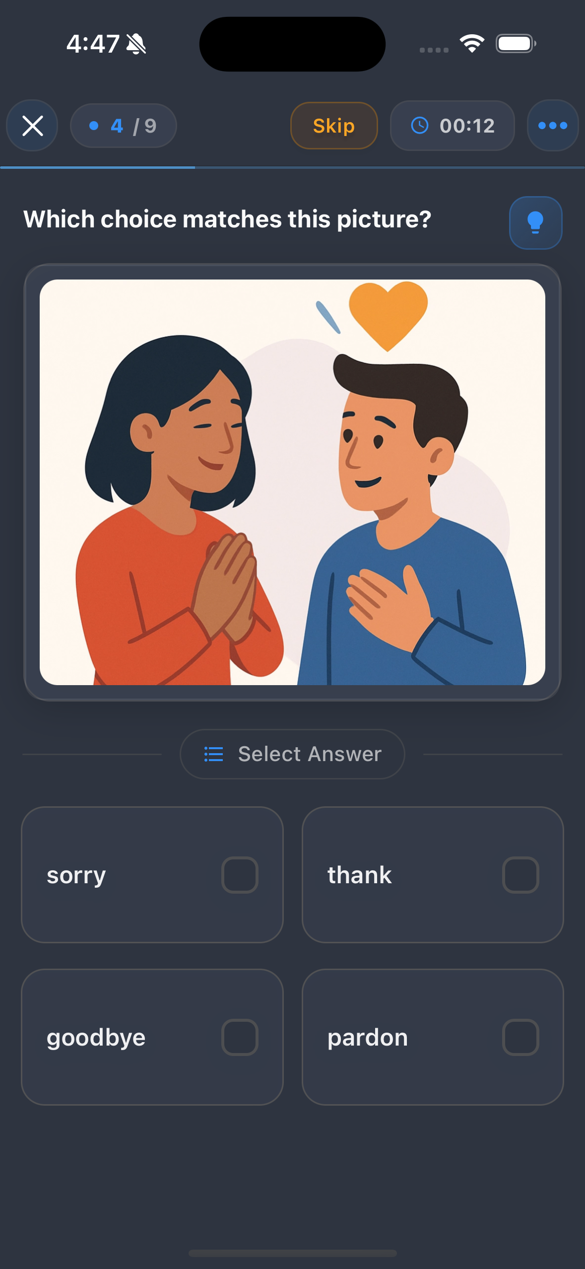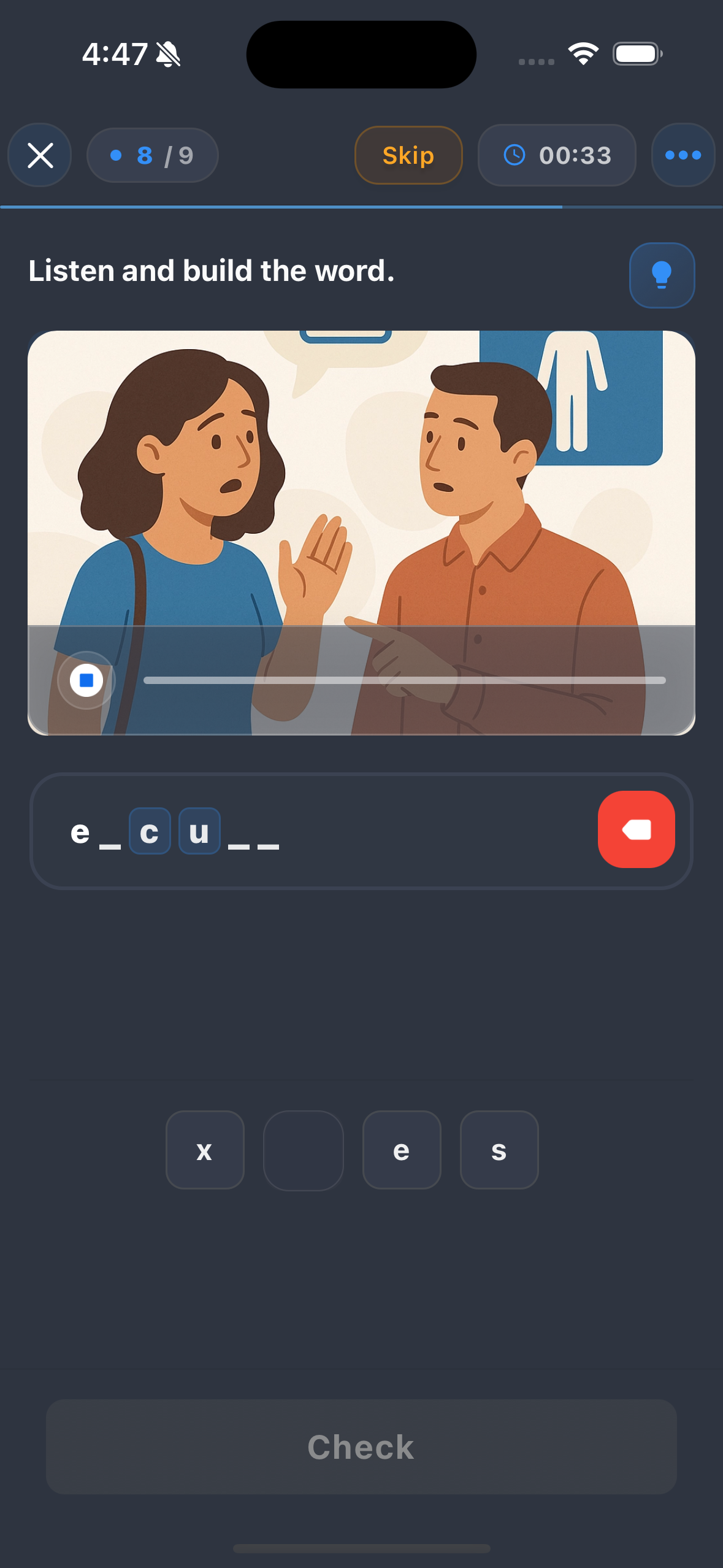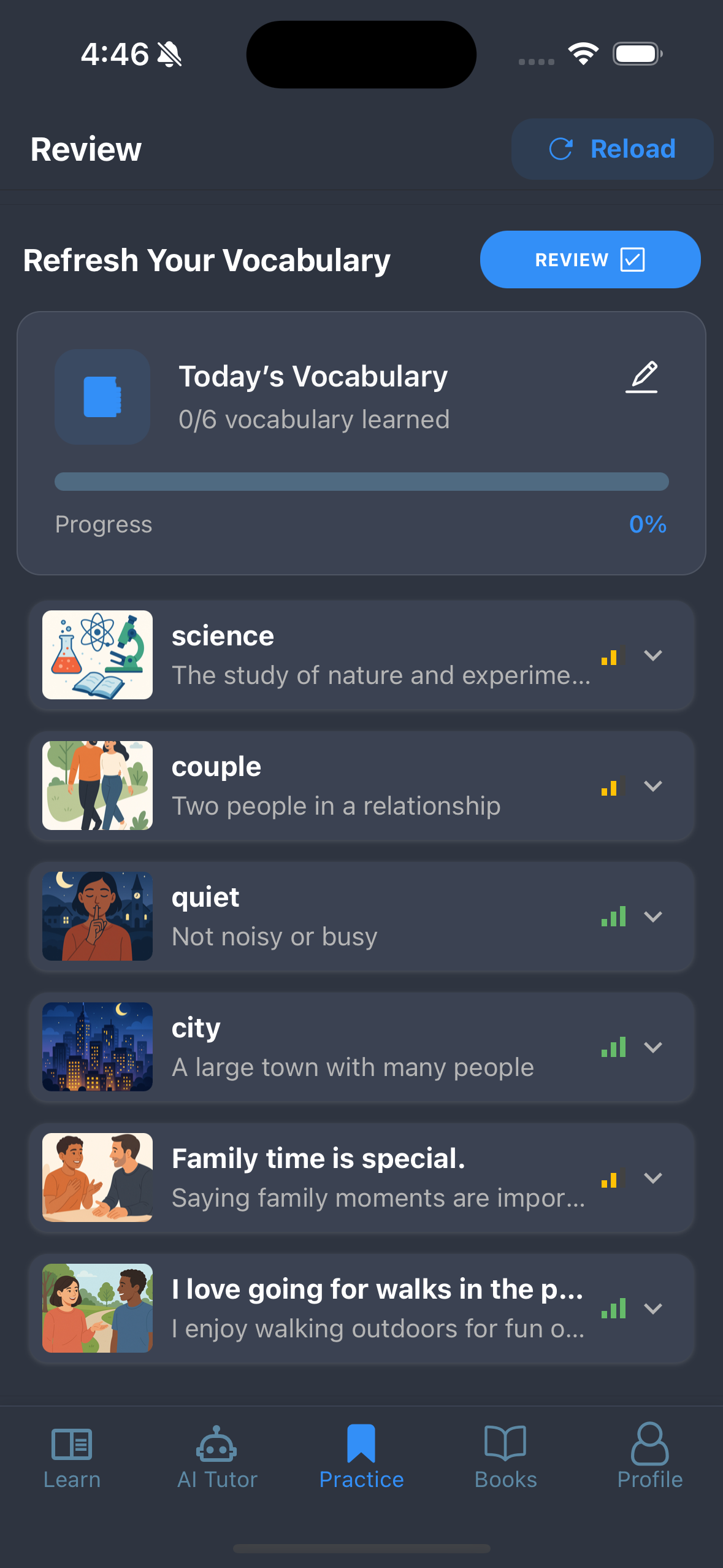 Receive smart reminders for daily lessons and vocabulary review — even when you haven't opened the app yet.