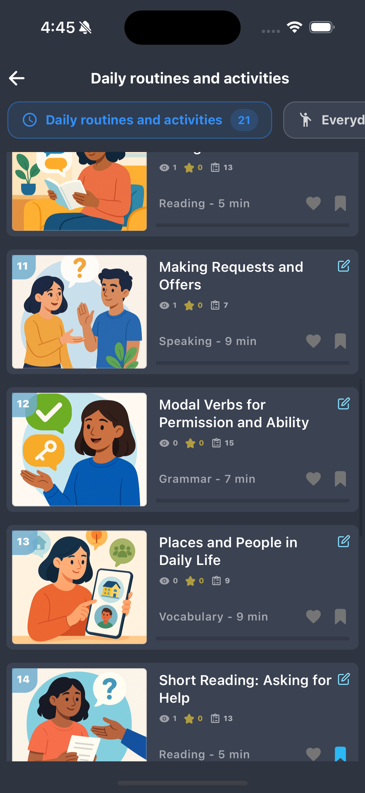 Follow a clear route from beginner to advanced with levels, modules, and lessons that adapt to your goals, interests, and current level.