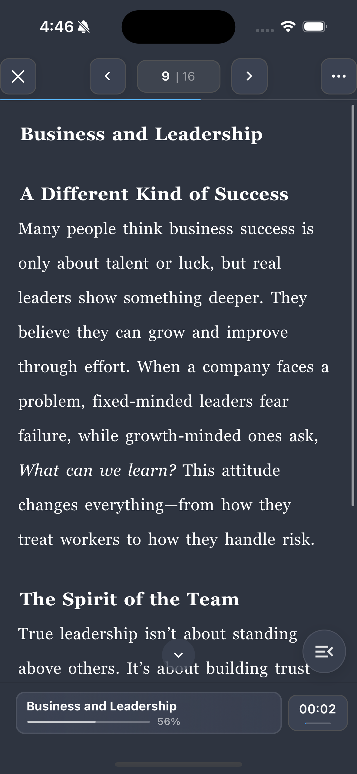 Read curated book summaries with instant translation support and save unknown words directly to your Library.
